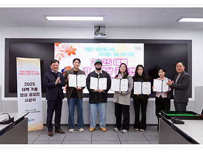 청소년·일반부 우수작 다수 선정…대상은 ‘태백을 걷다’... 수상작 온라인 홍보·SNS 콘텐츠로 활용해 지역 매력 확산... 2025년 12월 9일 작성. 태백시가 지난 8일 시청 재난상황실에서 ‘2025 태백가을영상공모전’ 시상식을 열고 올 한 해 태백의 가을을 가장 아름답고 감성적으로 담아낸 작품들을 발표했다. 이번 공모전은 ‘태백 가을’을 주제로 시민…