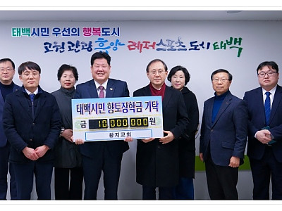 태백시청 방문해 지역 인재육성 장학금 전달했다…지속적 사회공헌 실천.... 매년 꾸준한 기탁 이어왔다…지역 학생 학업 지원과 교육 환경 개선에 사용... 2026년 2월 20일, 태백시민향토장학회에 지역 인재 양성을 위한 1천만 원의 장학금이 전달되며 지역사회 교육 후원이 다시 한 번 힘을 보탰다. 태백시민향토장학회(이사장 이상호)는 삼척동해태백산림조합(조…