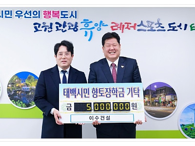 태백시민향토장학회, 이수건설 장학금 500만 원 기탁했다…지역 인재육성 지원 확대