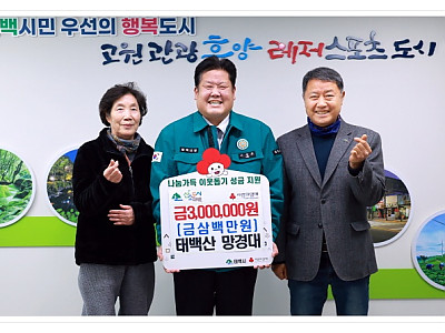 저소득 가구·소외계층 지원 위해 나눔 이어... 강원사회복지공동모금회 통해 지역 복지에 사용... 2026년 1월 12일 태백시(시장 이상호)는 태백산 망경대 윤대덕심 보살(윤계화)이 지난 8일 지역 내 저소득 가구와 소외계층을 돕기 위해 성금 300만 원을 기부했다고 밝혔다. 새해를 맞아 지역사회 나눔을 실천한 이번 기부는 경제적 어려움을 겪는 이웃들에게…