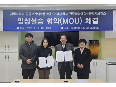 공공보건의료 이해 높인다…의학과 4학년 대상 현장 실습 운영... 태백시보건소 중심 지역 의료 기반 강화…실무형 의료인 육성 기대... 2026년 3월 24일 작성. 태백시가 연세대학교 원주의과대학과 업무협약을 체결하고 공공보건의료 인재 양성과 지역 의료 기반 강화를 위한 협력 체계를 구축했다. 태백시는 지난 3월 17일 보건소 2층 소회의실에서 연세대학교…