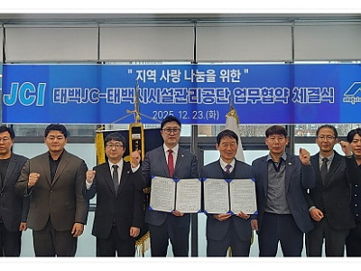 행정 역량과 청년 봉사 결합해 지속 가능한 지역사회 공헌 나서... 동절기 취약계층 지원 성과 바탕으로 봉사·복지사업 확대... 태백시시설관리공단과 태백JC가 행정과 청년 봉사를 결합한 지속 가능한 지역 나눔 체계 구축에 나섰다. 태백시시설관리공단(이사장 남궁증)과 태백JC(회장 전정훈)는 지난 23일 태백시시설관리공단에서 ‘지역 사랑 나눔을 위한 업무협약…