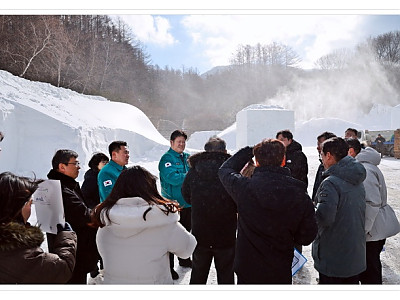 당골광장 중심으로 축제 전반 점검... 관람객 안전 최우선…한파 대응 체계도 확인... 2026년 1월 12일 태백시(시장 이상호)가 지난 9일 태백산국립공원 당골광장을 찾아 제33회 태백산 눈축제 축제장에 대한 현장점검을 실시했다. 태백을 대표하는 겨울축제 개막을 앞두고 축제 준비 상황을 전반적으로 점검하고, 시민과 관광객이 안전하고 쾌적하게 축제를 즐길…
