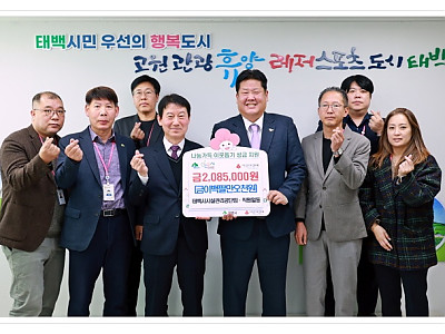 임직원 자발적 모금·수상금·행사 수익 모아 208만5천 원 전달... 강원사회복지공동모금회 통해 소외계층·저소득 가구 지원에 사용... 태백시시설관리공단이 임직원의 자발적 참여로 마련한 성금을 기탁하며 지역사회와의 상생과 공공기관의 사회적 책임 실천에 나섰다. 태백시(시장 이상호)는 태백시시설관리공단(이사장 남궁증)이 12월 17일 ‘희망2026 나눔캠페인…