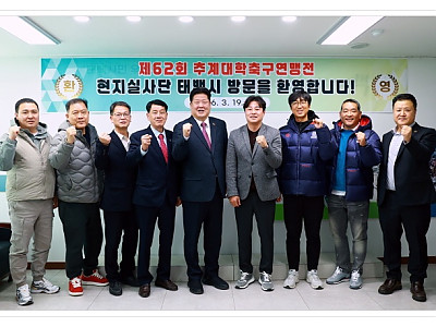 대학축구연맹 현지실사 진행…경기장·운영계획 집중 점검... 7월 80여 개 팀 참가 예정…지역경제 활성화 기대... 2026년 3월 20일, 태백시가 ‘제62회 추계대학축구연맹전’ 개최를 앞두고 현지실사와 운영 점검에 돌입하며 대회 준비를 본격화했다. 태백시는 지난 19일 한국대학축구연맹이 시를 방문해 관계자 면담과 경기장 현지실사를 진행했다고 밝혔다. 이…