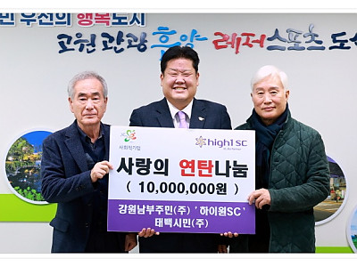 저소득 가구·소외계층 난방비 부담 완화 목적…지역 상생 나눔 실천... 희망나눔캠페인 이어 지속적 기부 행보…민간 주도 복지 안전망 강화... 강원 남부 지역 민간 기업들이 겨울철 난방 취약계층을 위해 다시 한 번 따뜻한 나눔에 나섰다. 태백시(시장 이상호)는 강원남부주민(주)(대표 송재범)와 ‘하이원SC’태백시민(주)(대표 윤인규)가 12월 17일 저소득…