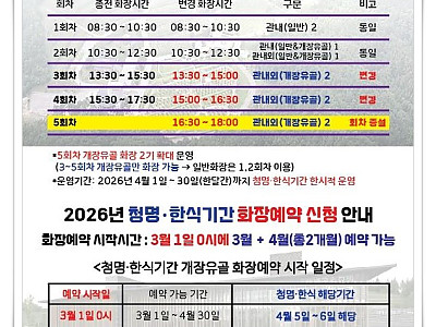 3월 1일부터 개장 유골 화장 예약 신청받아... 전문 장례지도사 배치해 시민 편의 강화... 태백시시설관리공단이 운영하는 태백시화장장이 2026년 청명·한식 기간을 앞두고 개장 유골 화장 예약 사전 신청을 접수했다. 화장 수요가 집중되는 시기에 대비해 운영 체계를 강화했다. 태백시시설관리공단은 오는 4월 5일부터 6일까지 이어지는 청명·한식 기간을 앞두고…