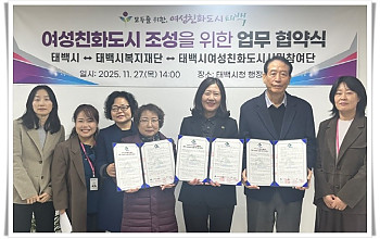 여성과 사회적 약자 보호 중심 4대 협력 분야 설정 민·관 협력 기반 구축으로 성평등 도시 전환 속도 2025년 1월 28일 작성. 태백시는 지난 27일 태백시복지재단, 태백시여성친화도시 시민참여단과 함께 여성친화도시 조성을 위한 업무협약을 체결하고, 여성과 사회적 약자를 위한 안전하고 평등한 도시 기반을 강화하기 위한 공동행보에 나섰다. 이번 협약은 지역…