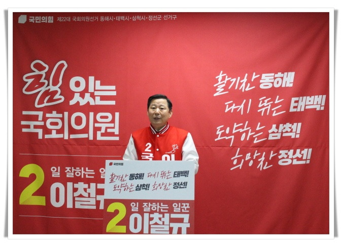 이철규 후보는 기자회견에서 “여러분이 주신 힘으로! 힘 있는 3선 국회의원이 되어 그동안 여러분과 함께 그려온 동해·태백·삼척·정선의 100년 미래를 완성하겠다”라고 출마 이유를 밝혔다.