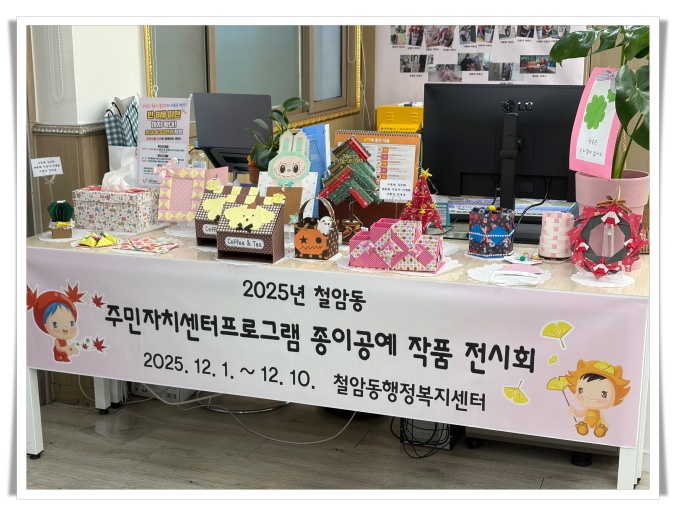 철암동행정복지센터가 2025년 하반기 주민자치 프로그램의 성과를 시민과 공유하기 위해 종이공예 작품 전시회를 열었다.