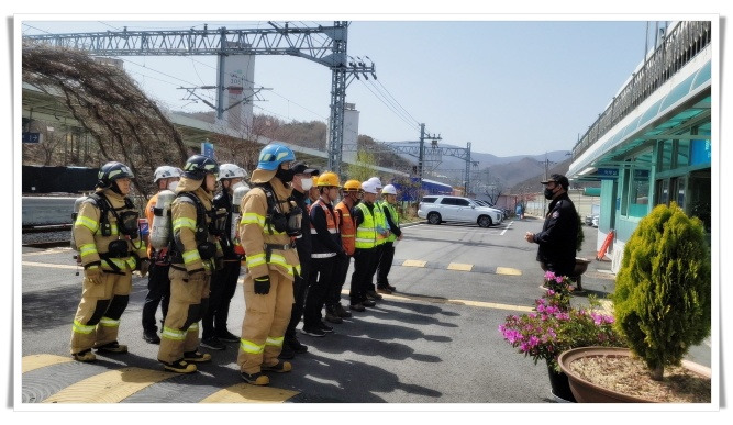 한국철도 태백관리역은 4월 10일(월) 오후 14시 태백소방서, 코레일테크 등 유관기관과 합동 소방훈련을 시행했다.