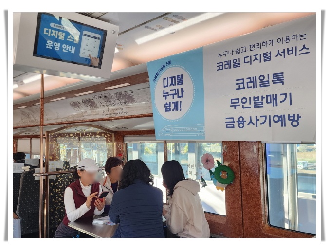 장·노년층 이용객이 많은 단체 관광열차의 특성에 맞춰 기획된 이번 프로그램은 디지털 접근성이 낮은 고객들이 실제 열차 안에서 편안한 환경 속에 도움을 받을 수 있도록 구성됐으며, 강원본부 직원들은 코레일톡 회원가입부터 비밀번호 찾기, 승차권 예매 방법까지 단계별로 1:1 맞춤 안내를 제공했다.