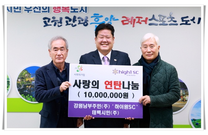 이는 지역 사회가 스스로 취약계층을 돌보고 함께 겨울을 나겠다는 연대의 메시지다. 강원남부주민(주)와 ‘하이원SC’태백시민(주)의 이번 기부가 태백 전역에 따뜻한 온기로 이어질지 주목된다.