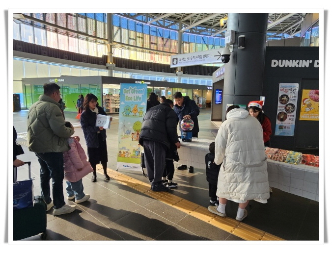 연말 강릉역에서 열린 ‘Get Green! Eco 라이프’ 캠페인은 환경 보호와 에너지 절약, 생명 존중이라는 메시지를 동시에 전하며 시민들의 공감을 이끌어냈다.