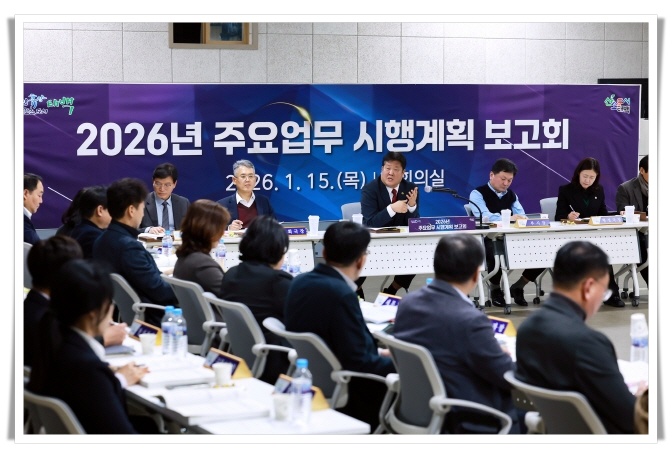 태백시(시장 이상호)는 1월 15일 시청 대회의실에서 ‘2026년 주요업무 시행계획 보고회’를 개최하고, 민선 8기 하반기 시정 운영의 핵심 동력이 될 주요 정책 과제와 추진 방향을 공유했다.