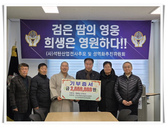 혜덕 스님은 “120년에 걸친 석탄산업이 이제 역사 속으로 사라지고 있는 시점에서 산업전사들의 희생과 헌신을 기억하고 기록하는 일은 더욱 중요해졌다”며 “위원회의 활동이 반드시 필요한 때라고 생각해 비록 큰 금액은 아니지만 마음을 보태게 됐다”고 기부 취지를 밝혔다.