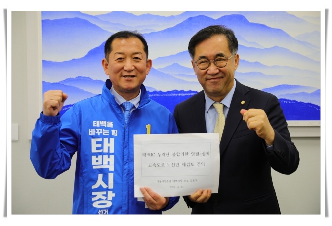 김동구 강원 태백시장 예비후보가 영월~삼척 고속도로 노선에서 태백시가 제외된 문제를 지적하며 태백IC 설치를 공식 건의했다.