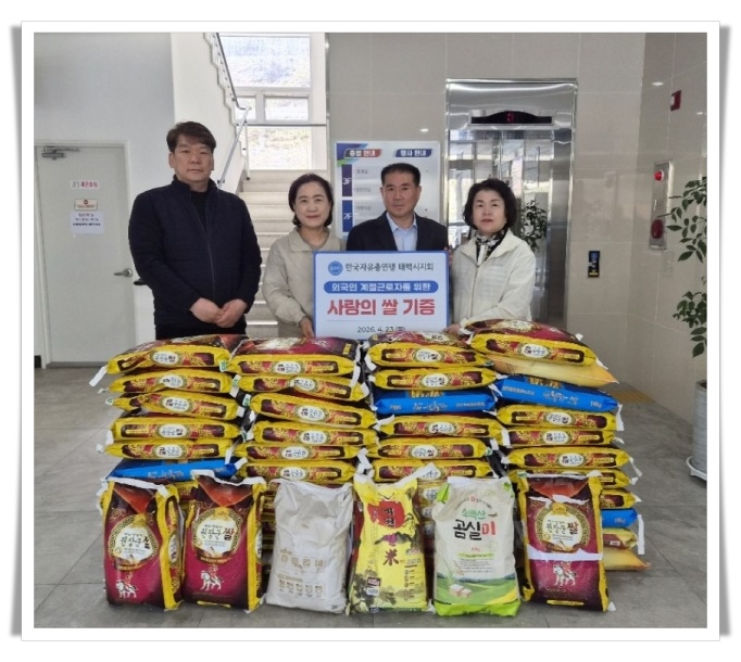 한국자유총연맹 태백시지회는 지난 23일 태백시 농업기술센터에 외국인 계절근로자를 위한 쌀 10kg 50포를 기부했다.