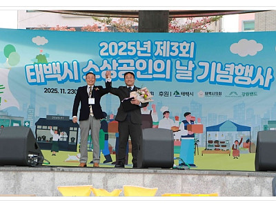 소상공인연합회, 강원특별자치도 지역상 최우수상 수상…지역 상권 회복 성과 부각 길찬우 회장 퇴임식도 함께 진행…“한 명의 소상공인으로 계속 현장을 지키겠다” 2025년 1월 26일, 작성. 태백시가 지난 23일 태백문화광장에서 ‘제3회 소상공인의 날 기념행사’를 열고 지역경제의 핵심 축을 담당해 온 소상공인들의 노고를 격려했다. 태백시는 이번 행사에서 올해…